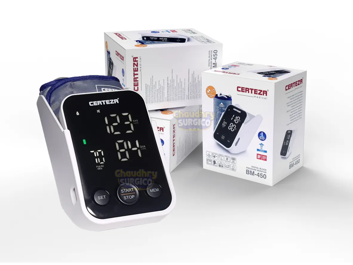 The Best Digital Blood Pressure Machine Certeza BM-450 is a feature-rich digital blood pressure monitor designed for ease of use and accuracy. Its compact and sleek design with a large, easy-to-read LED display makes monitoring your blood pressure a breeze. No more squinting at tiny numbers!